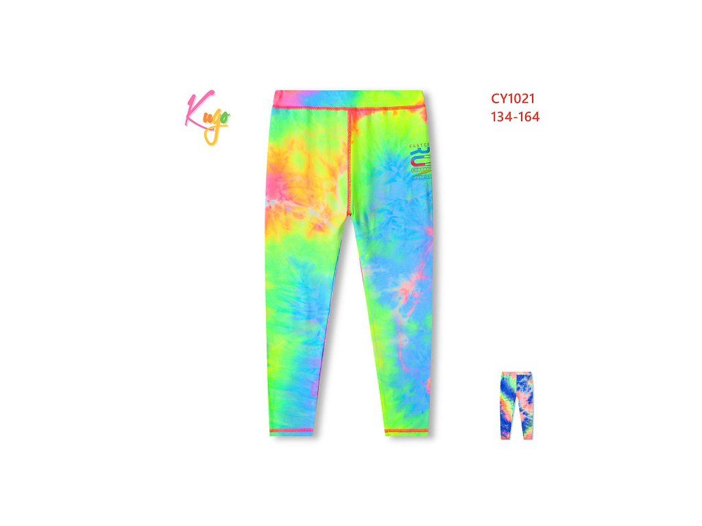 Batikovaný vzor dodává legínám hravý a sytý vzhled; barvy zůstávají intenzivní i po vyprání. Měkká 100% bavlna a širší pružný pas neškrtí v pase a umožňují volný pohyb při hře i ve škole.