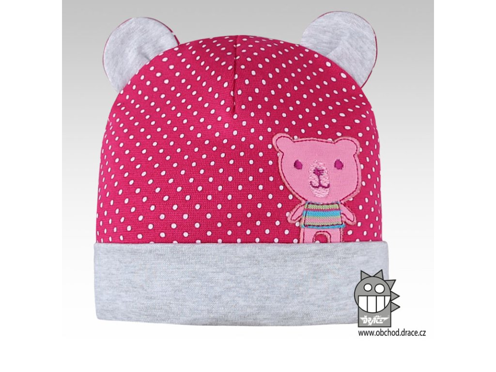 Udržte hlavičku vašeho miminka v teple a stylu s touto roztomilou dětskou čepičkou v růžové barvě s motivem méďy a puntíky. 👶💕