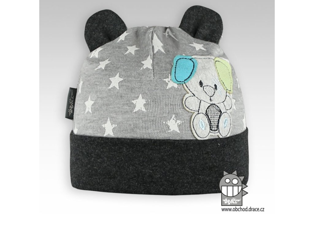 🌟 Roztomilá čepice pro vaše nejmenší s motivem pejska v šedém provedení, která zaručeně zahřeje a potěší.