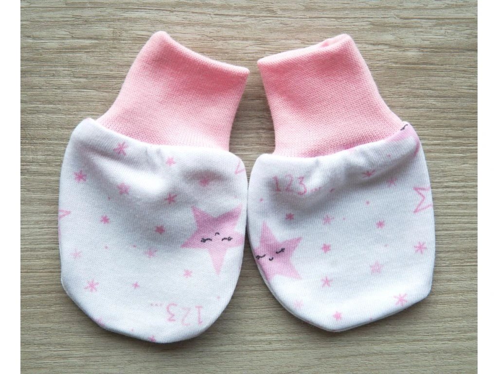 🧤 Bavlněné rukavičky hvězdička – jemná ochrana pro Vaše miminko bez palečku.