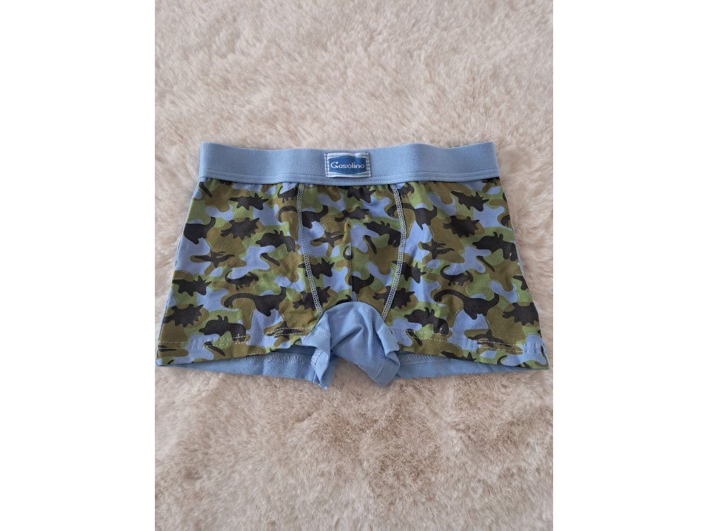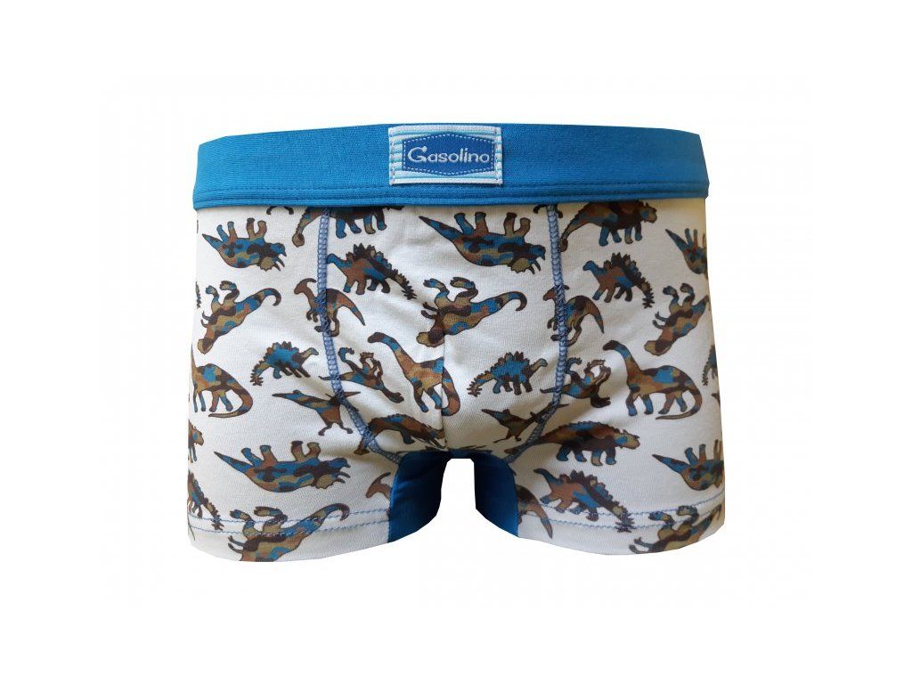 Boxerky s dinosaurem — hravý potisk v modrých a světlých odstínech