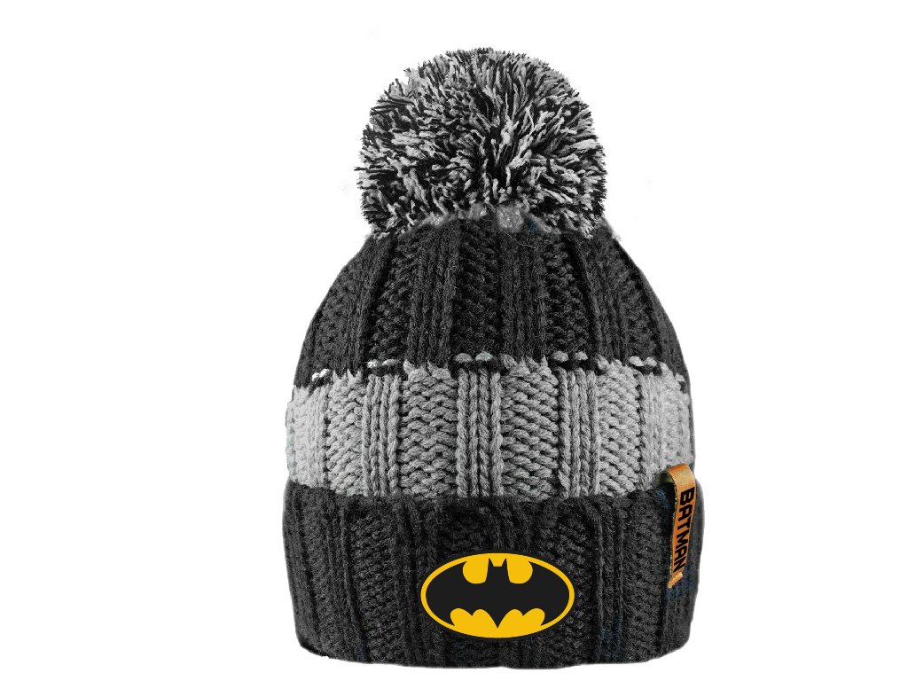🎭 Design: černá a šedá kombinace s výrazným znakem Batmana a veselým bambulkem na vrcholu dodává čepici jedinečný vzhled.