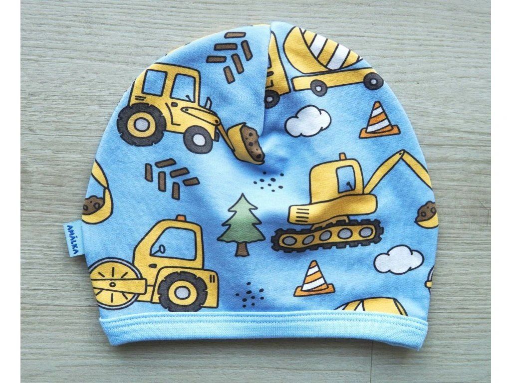 Digitální potisk bagru na modrém podkladu dělá z čepičky oblíbený doplněk pro malé stavitele. Materiál je měkký a prodyšný.