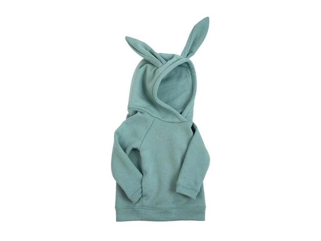Kapuce zdobená králičími oušky je hlavní vizuální prvek této mikiny. Tento detail dělá z obyčejné mikiny hravý kousek, který snáze oblékají i menší děti.