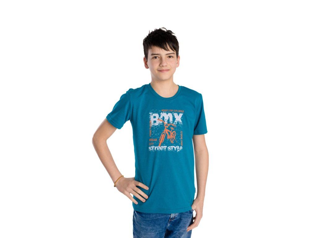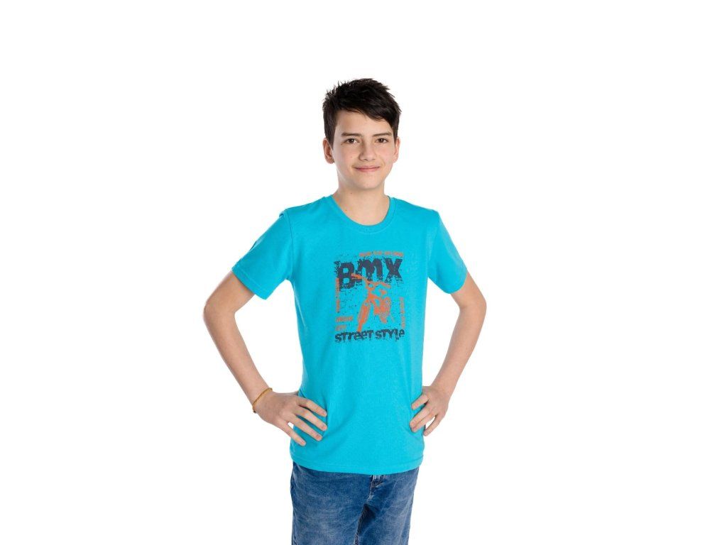 Chlapecké tričko BMX s nápisem – Tyrkys/Modrá