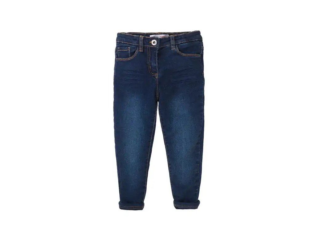 Tmavě modrý denim s kapsami na přední i zadní straně. Tento odstín je univerzální a dobře schová šmouhy i po dni na pískovišti. Materiál neprosvítá.