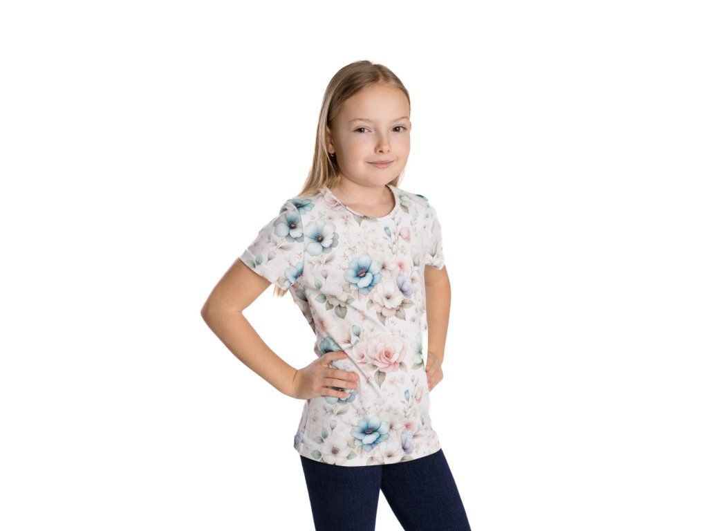 Dívčí tričko s pastelovými květy - bavlna/elastan