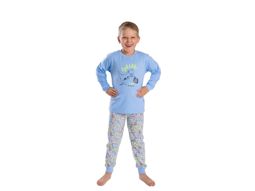 👕 Popis: Komfortní dlouhé pyžamo s roztomilým motivem dinosaura je ideální pro klidný a pohodlný spánek vašich dětí. Rukávy i nohavice jsou ukončeny pružnými manžetami, které zajišťují perfektní přilnutí a zabrání shrnování během noci.