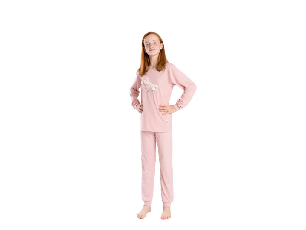 Objevte pohodlí a styl v jednom s naším dlouhým pyžamem s motivem vážky. Tento jemný růžový komplet je ideální volbou pro klidné a příjemné večery i noci. Díky vysoké kvalitě 100% bavlny nabízí měkkost a prodyšnost, která šetrně pečuje o jemnou dětskou pokožku.