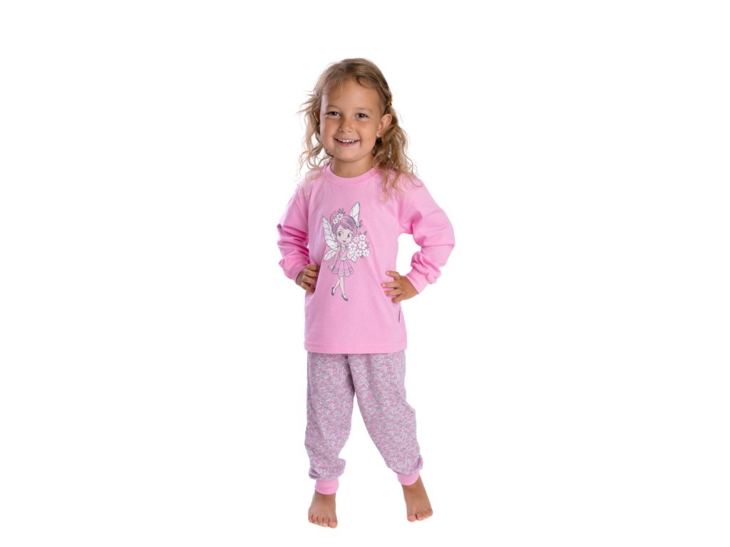 🌟 Pro malé princezny: Roztomilé dlouhé pyžamo s motivem víly v pastelových odstínech Růžová a tmavě růžová.