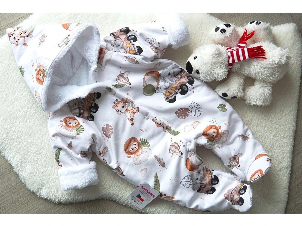 ❄️ Vnitřní zateplení tvoří teploučká bílá chlupatka, která udržuje miminko v teple i v chladnějších dnech.
