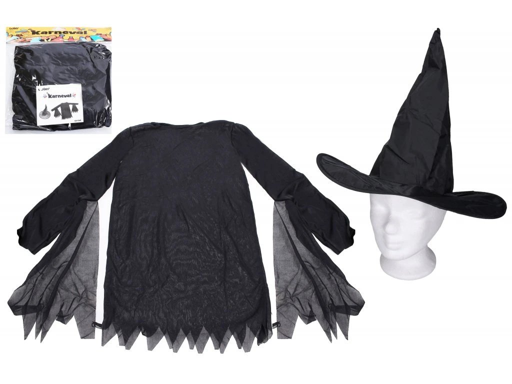 - 🎨 Vzor: čarodějnický motiv v podobě kompletu šatů a klobouku; jednoduchý převlek bez nutnosti dalších doplňků.