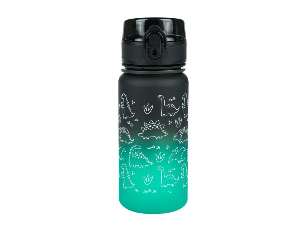 Zelená láhev s dinomotivem nabízí uzamykatelné víčko a praktické sítko pro ovoce nebo čaj. Těsní a nekapká.