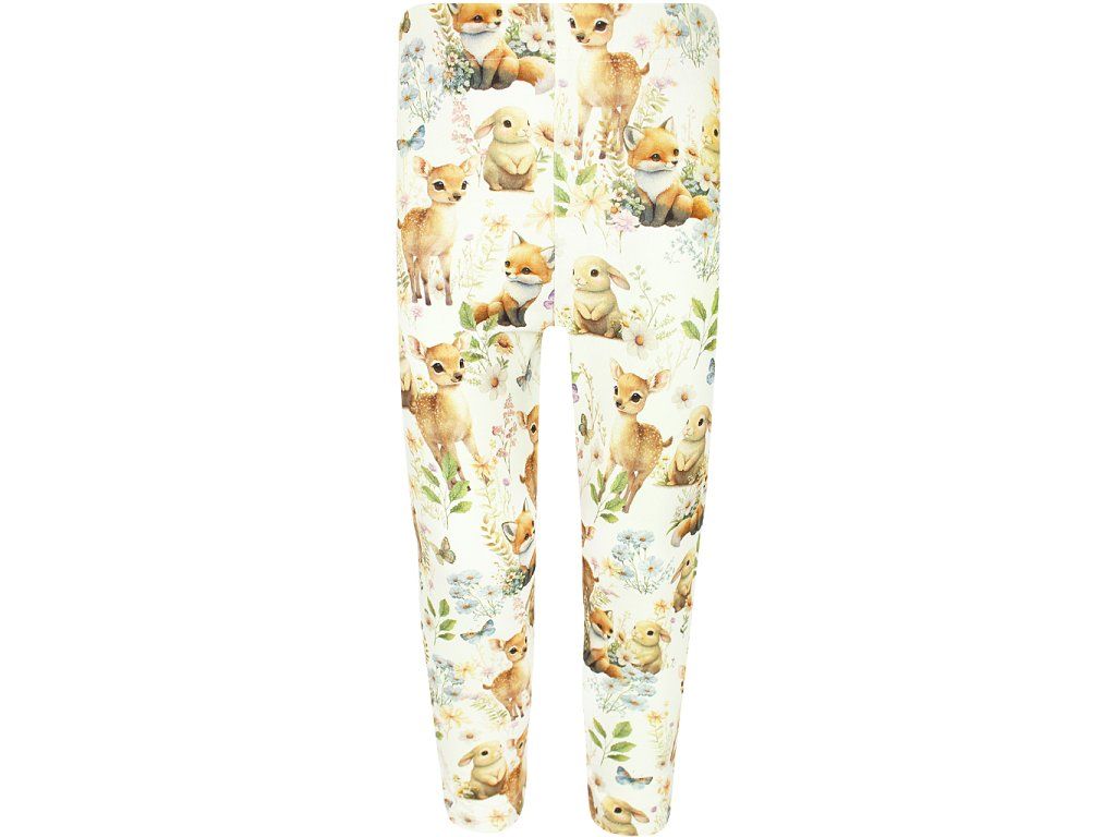 Legíny zdobí potisk se zajíčky, lištičkami a srnečky rozprostřenými jako na louce.