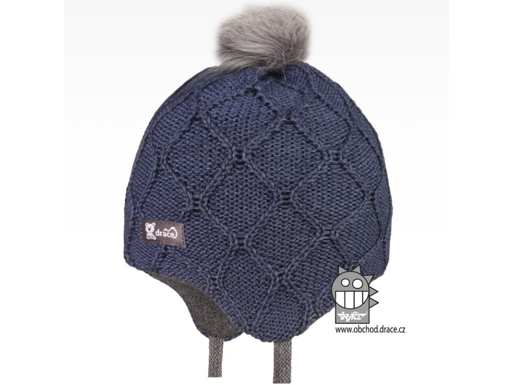 🧶 Čepice je zdobena elegantním plastickým vzorem a má praktické zavazování pod bradou, které zajišťuje pevné držení na hlavičce a ochranu oušek.