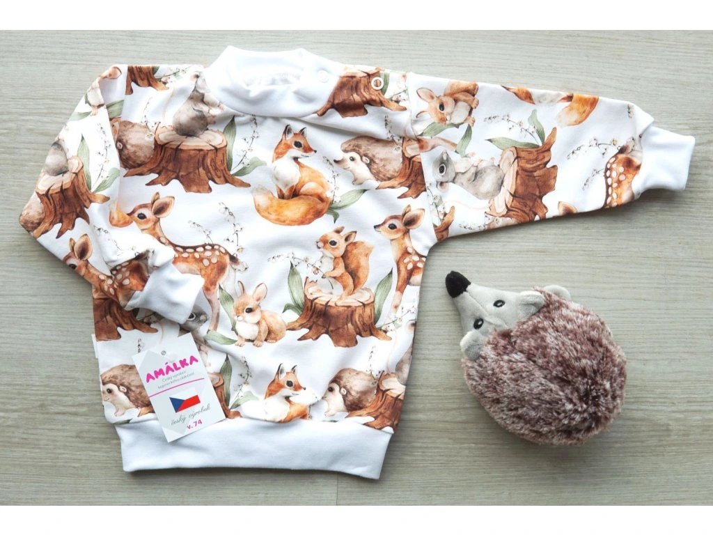 🦊 Mikina lesní zvířátka potěší všechny malé milovníky přírody díky jemnému digitálnímu potisku roztomilých lesních zvířátek, která vypadají jako živá.