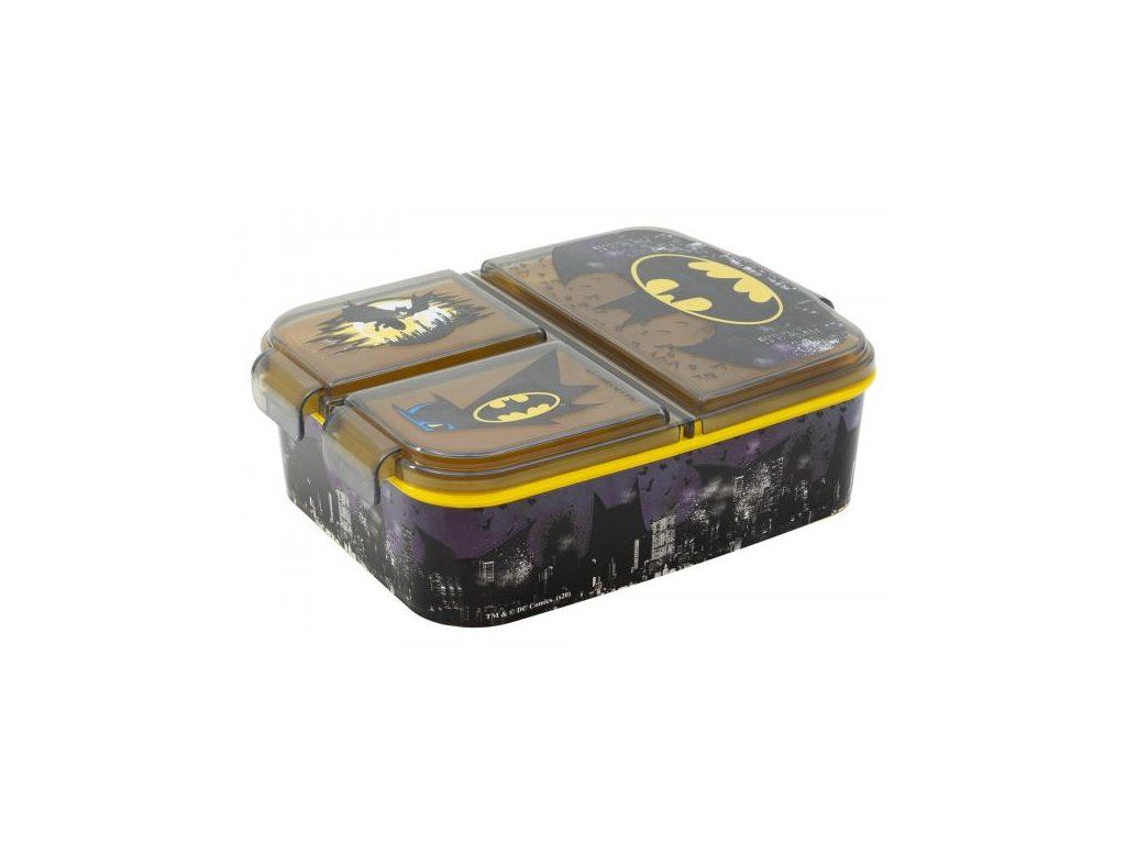 Žlutý dětský box s motivem Batmana a třemi přihrádkami pro snadné třídění svačiny a drobností. Materiál je bez BPA a snadno omyvatelný.