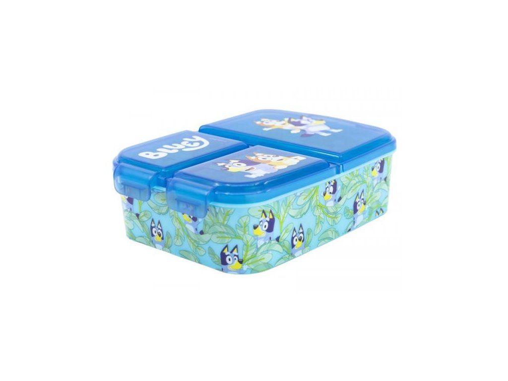 Design v jasné modré barvě s oblíbenou postavičkou Bluey potěší děti při každém otevírání a pomůže rychle poznat jejich svačinu.Box má tři přihrádky a pevné těsnící víko.