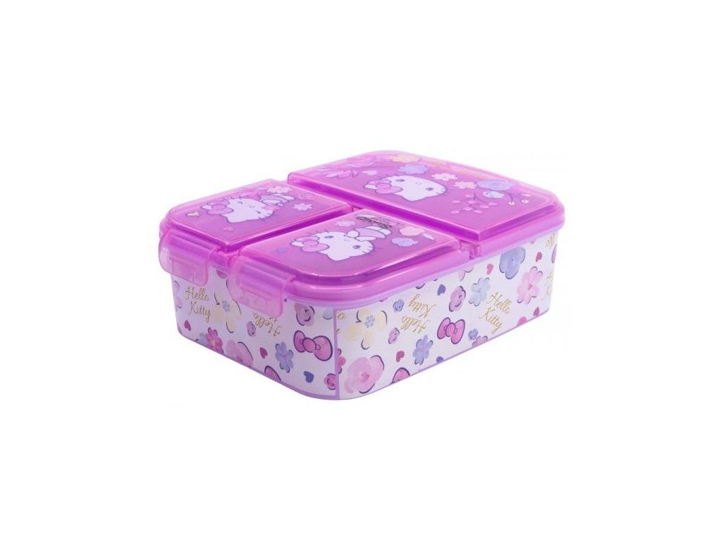 Fialový box s motivem Hello Kitty, který zaujme na první pohled. Materiál je bez BPA a lehký, proto jej dítě snáze nosí.