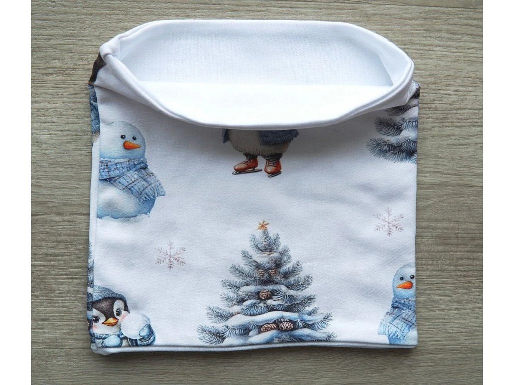 🧣 Nákrčník tučňák – ideální doplněk pro děti, který zahřeje a zároveň potěší originálním motivem tučňáků a zimní přírody.