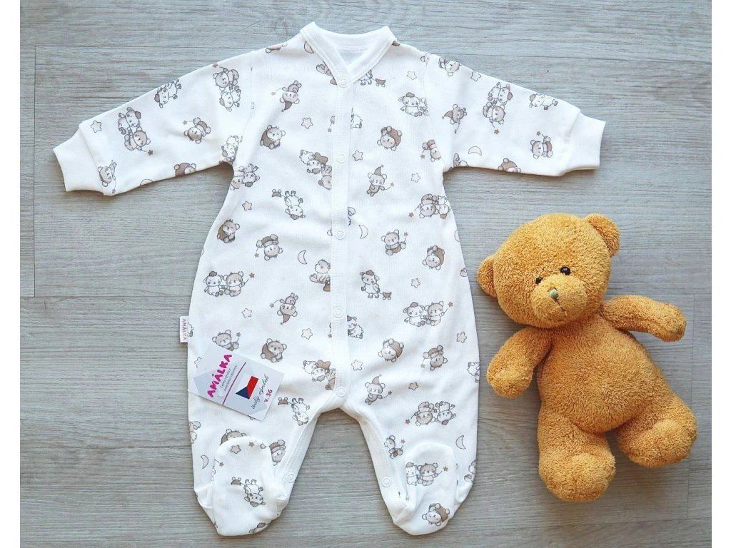 Něžný potisk medvídků v oříškové barvě s celozapínacím střihem na patentky až k nožkám. Materiál je jemný a prodyšný.