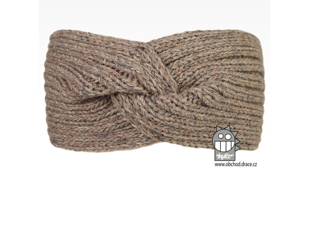 Pletená čelenka twist šedo hnědá