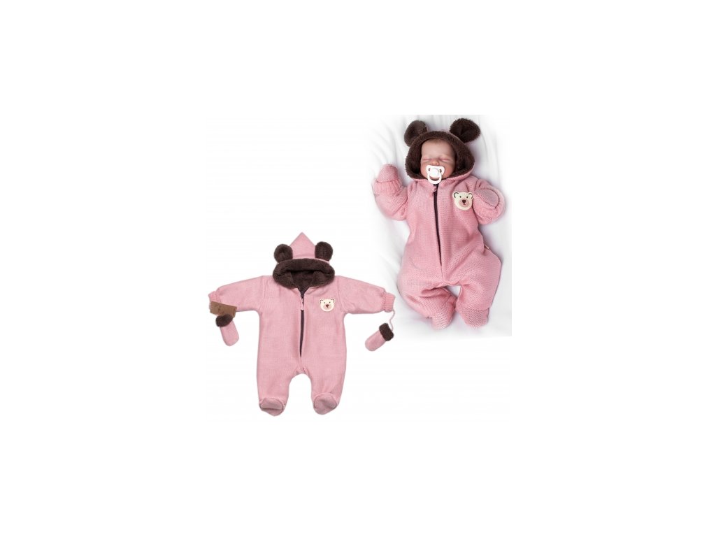 🧸 Pletená kombinéza Teddy bear růžová je ideální pro podzim, jaro a teplejší zimní období. Díky praktickému zapínání na zip uprostřed oblékání rychle a jednoduše. Součástí jsou i měkké rukavičky, které chrání dětské ručičky před chladem.