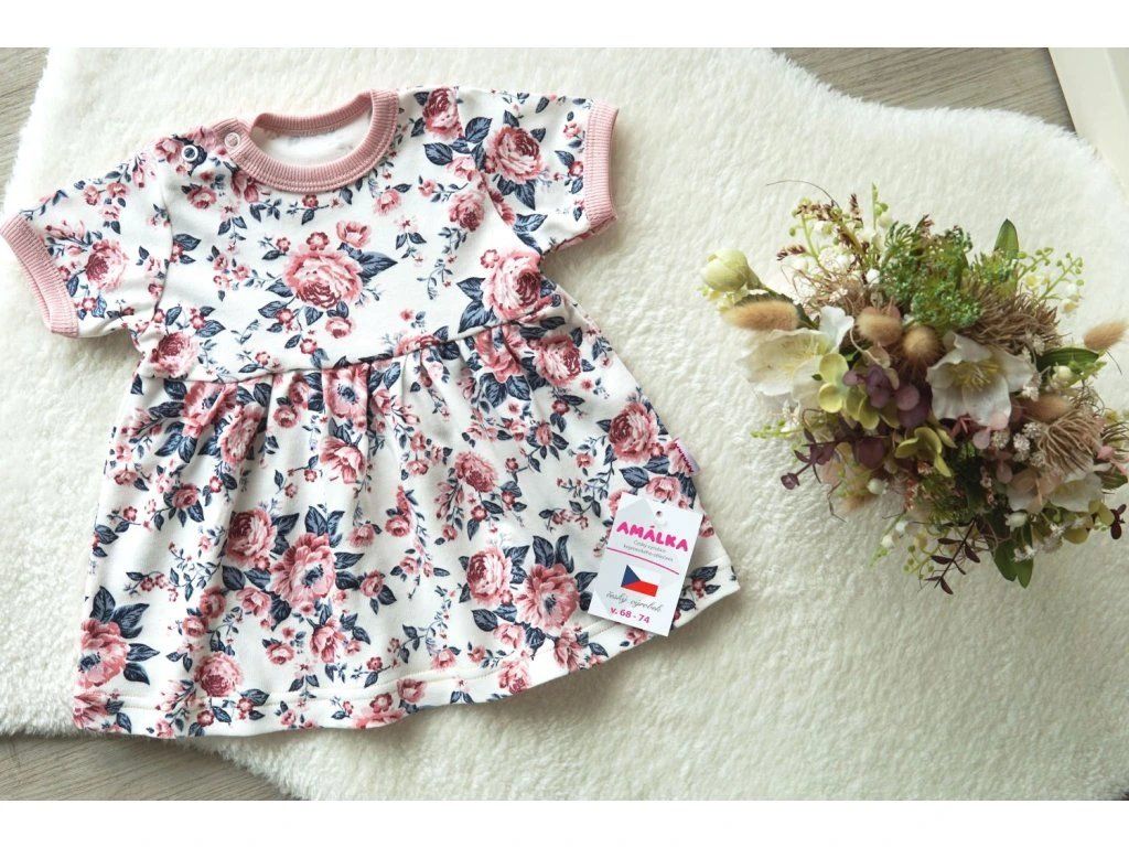 - 📏 Střih: krátký rukáv, volnější áčkový tvar, zapínání pomocí baby druků na ramínku pro snadné oblékání.