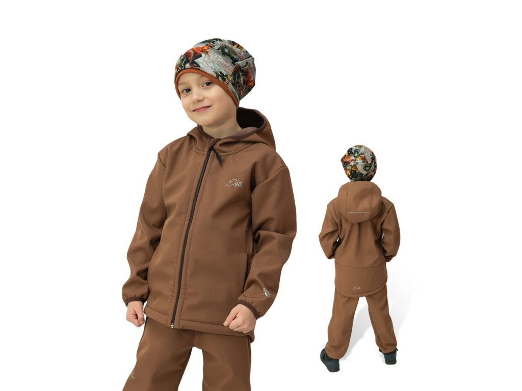 🧥 Softshellová bunda brown - ideální volba pro aktivní děti, které si chtějí užívat venkovní hry za každého počasí.