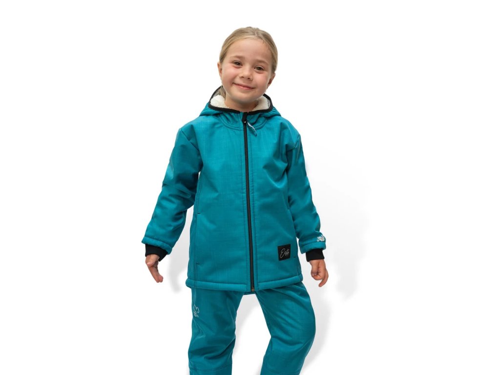 Softshellová bunda s beránkem petrol – ideální společník pro dětské dobrodružství za každého počasí! 🌦️