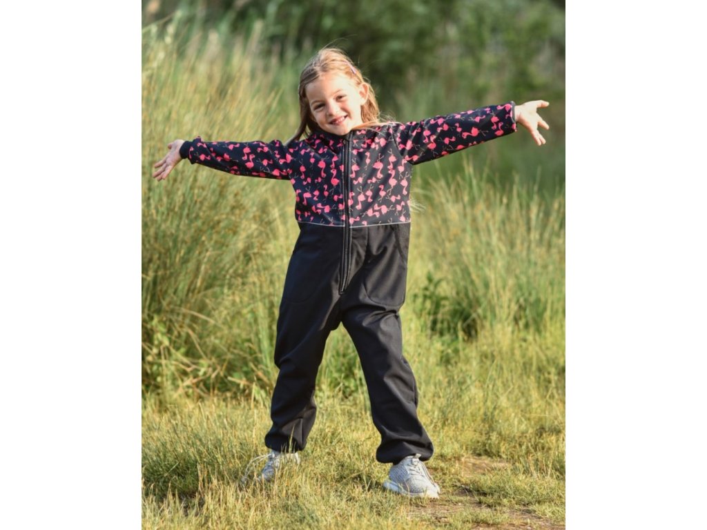 Dětská softshellová kombinéza 2 v 1 – bunda a kalhoty v jednom kousku pro maximální pohodlí a praktičnost.