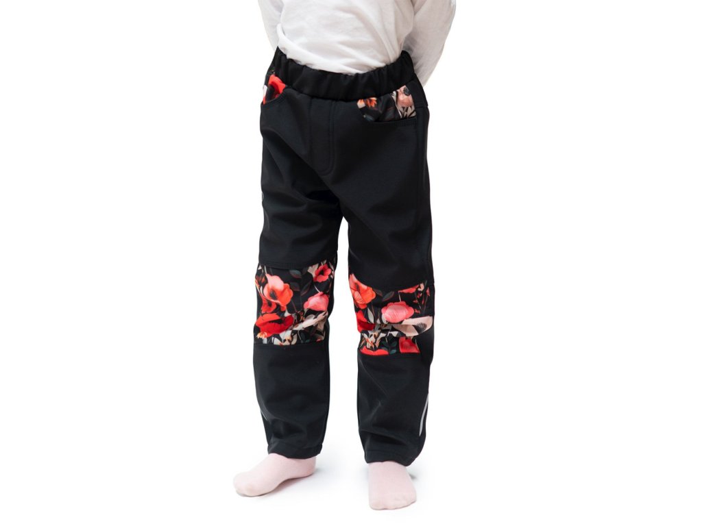 🌸 Styl a pohodlí v jednom: Naše dětské softshellové kalhoty s motivem vlčích máků spojují moderní design s maximálním komfortem pro vaše malé dobrodruhy.