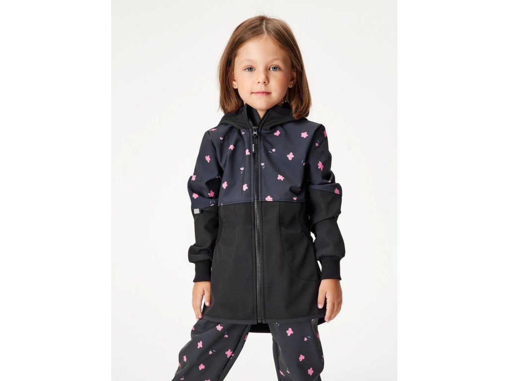 🌸 Styl a pohodlí: Tento barevný softshellový kabát v kombinaci černé a fuchsiové s jemným květinovým potiskem je ideální volbou pro malé i větší děti, které chtějí být během jarních a podzimních dní stylové a zároveň v teple.