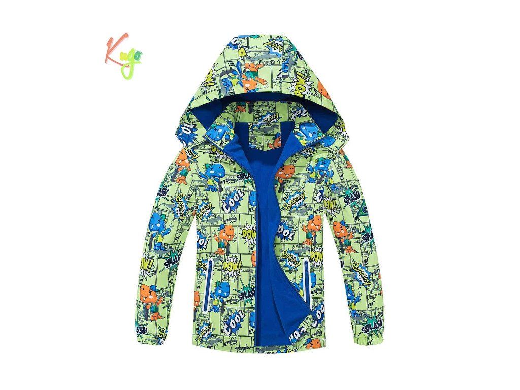 Dinosauří potisk po celé ploše dělá z bundy hravý kousek, který děti rády nosí. Bunda je voděodolná, lehká a má měkkou bavlněnou podšívku.