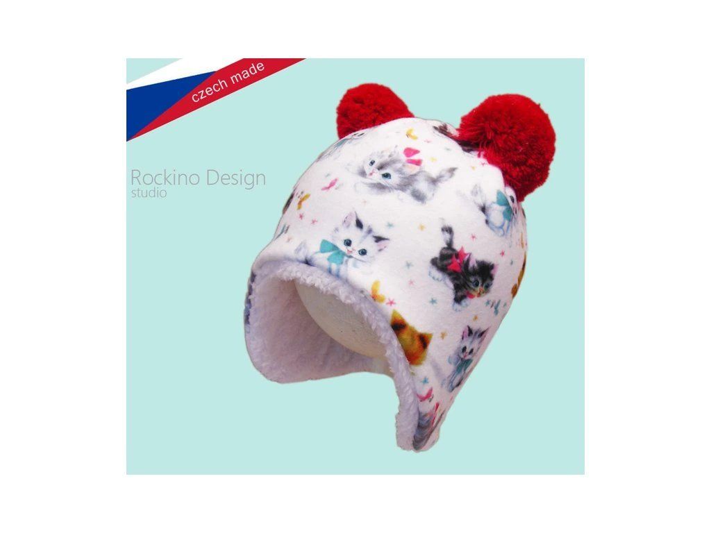 Dětská čepice s koťátky - teplá podšívka