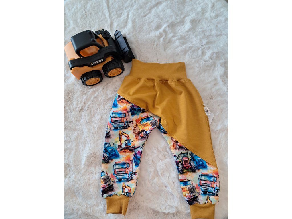 Dětské tepláčky Stavební auta - Hořčicová