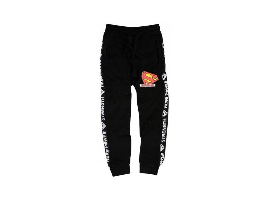 Originální potisk Supermana v černé nebo modré variantě přitáhne pozornost malých hrdinů. Měkká 100% bavlna, elastický pas se stahováním a boční kapsy zaručují pohodlí při hrách i na lítačkách.