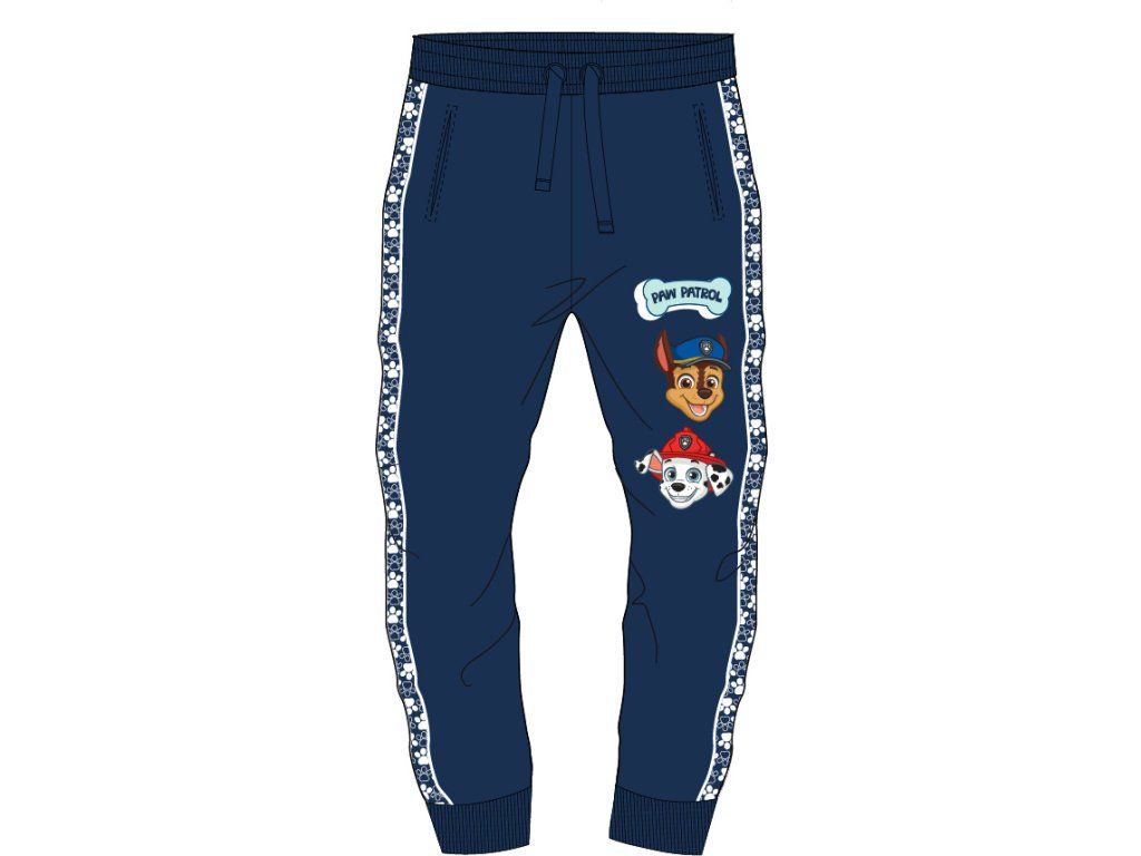 - 🎨 Vzor: dekorativní pruh s tlapkami a potisk postaviček Paw Patrol po stranách nohavic.