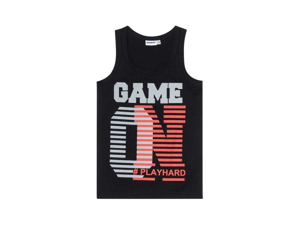 Potisk "game on" na předním díle dává tílku jasný herní motiv. Materiál je prodyšný a příjemný na pokožku.