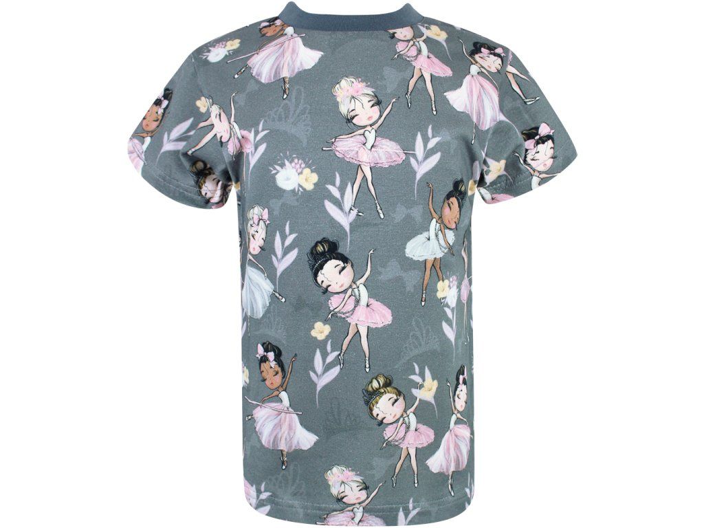 Design kombinuje jemný dětský motiv baletek se šedým podkladem, který drží vzor nenápadný i při běžném nošení. Jako majitelka obchodu jsem trička několikrát prala a náplet i barva zůstaly pěkné, proto mohu říct, že vzor je praktický pro každodenní použití.