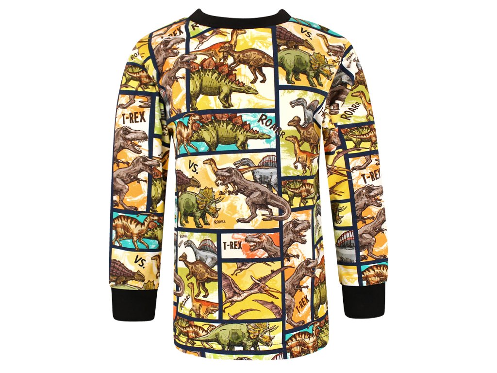 🦕 Tričko dlouhý rukáv dinosauři je ideální volbou pro malé milovníky dinosaurů. Díky neprojmutému střihu nabízí maximální pohodlí a volnost pohybu. Elastické náplety na krku a rukávech usnadňují oblékání a zajišťují perfektní přizpůsobení.