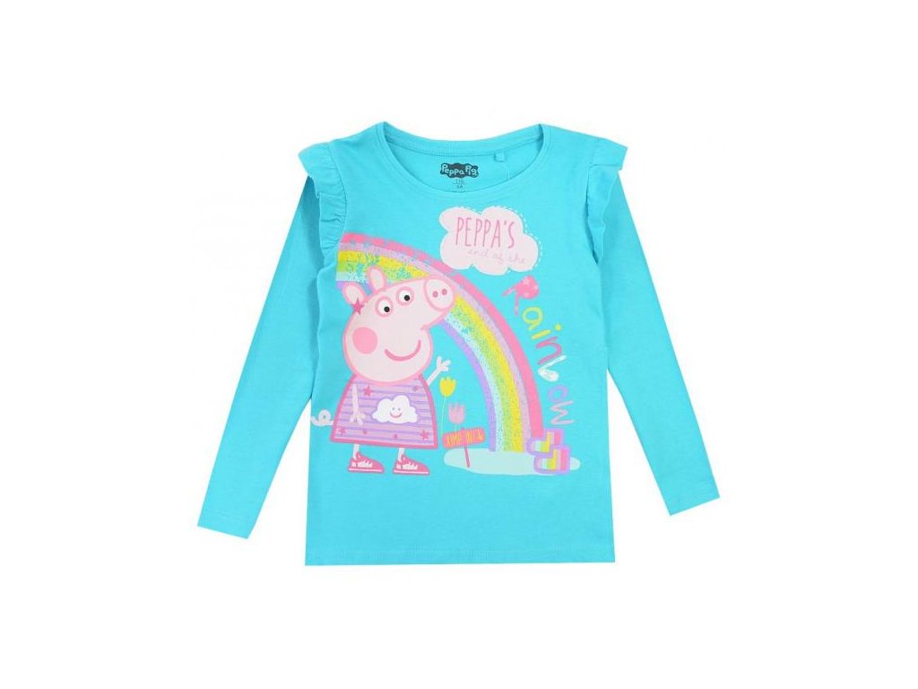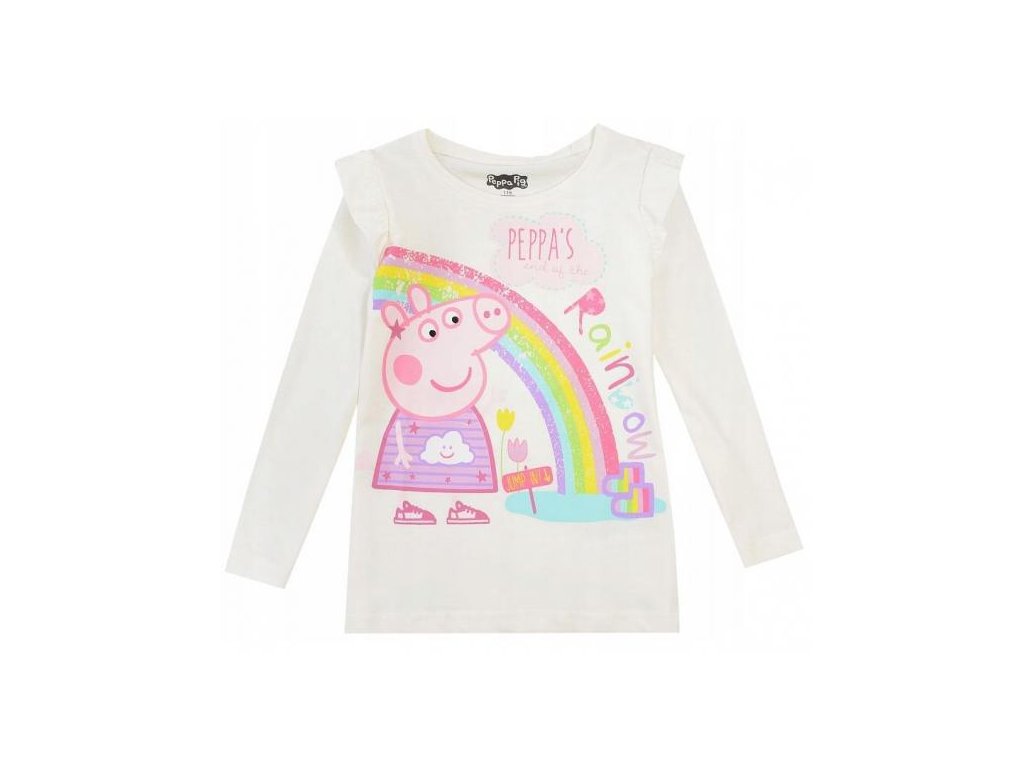 🌈 Stylové dětské tričko s motivem prasátka Peppy v oblíbených barevných variantách: krémová a tyrkysová.