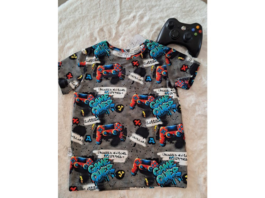 - 🎨 Vzor: barevné herní ovladače a nápis "Game Over"; syté barvy, výrazný tisk.