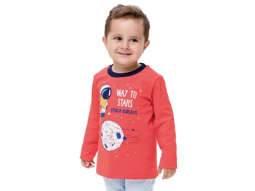 🚀 Tričko Space Bandits – perfektní volba pro malé objevitele vesmíru! Červené dětské tričko s dlouhým rukávem zaujme hravým motivem kosmonauta a planety doplněným nápisem Way to Stars - Space Bandits. 🌟 Vyrobeno z příjemného a pružného materiálu, který zajistí maximální pohodlí po celý den.