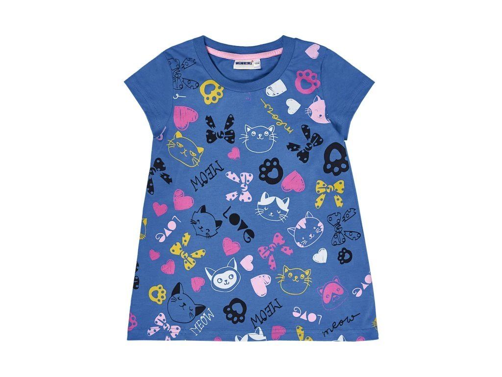 Dívčí tunika s kočičkami - Modrá/Růžová