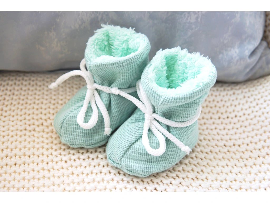 🟢 Zateplené bačkůrky zelené - wafle – dokonalá volba pro teplé a pohodlné nožky Vašeho miminka.
