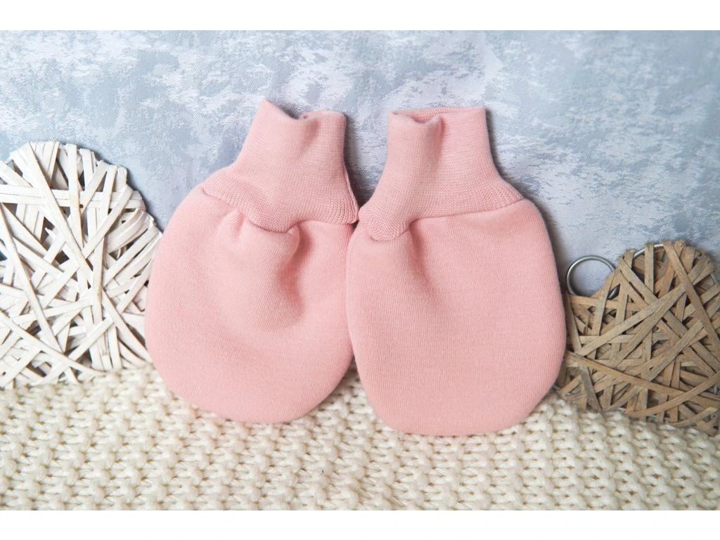 🧸 Zateplené rukavice pudrové bez palečku, ideální pro citlivou pokožku miminka.