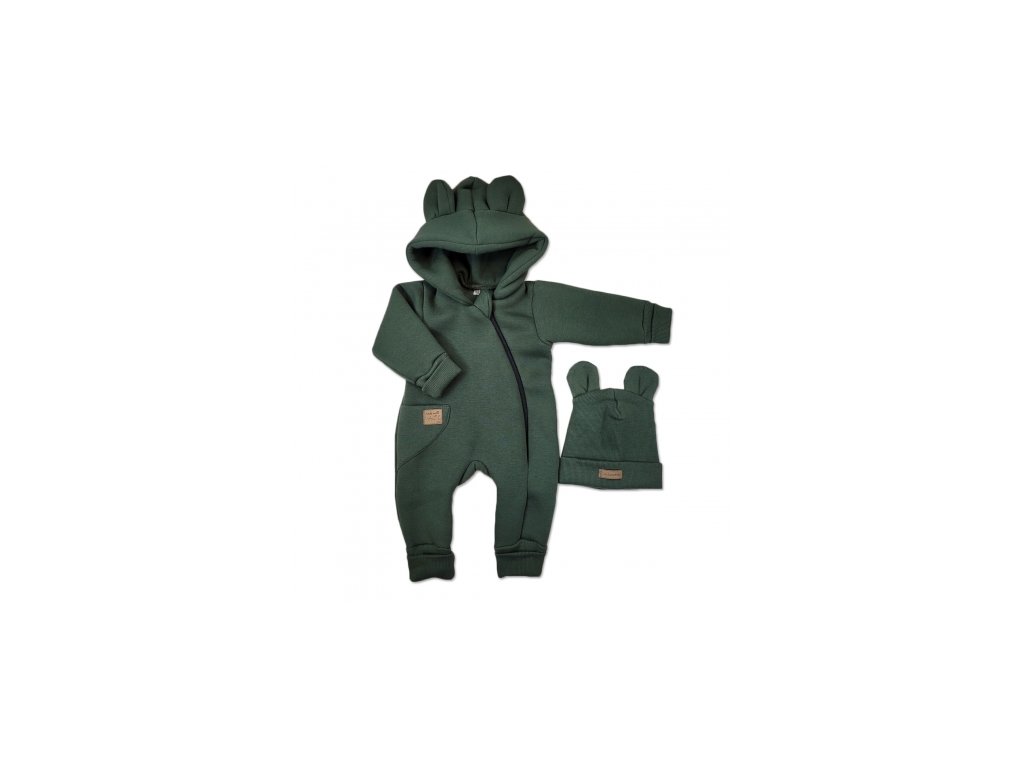 🌟 Zateplený overal khaki s kapucí a roztomilými ušima – ideální volba pro nejmenší na jarní a podzimní dny!
